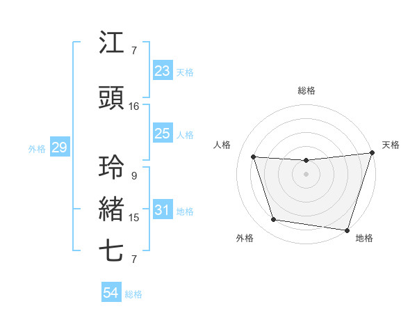 江頭 玲緒七さんを姓名の画数から五運を鑑定