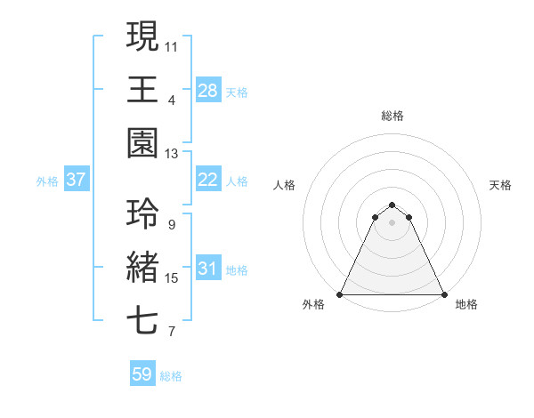 現王園 玲緒七さんを姓名の画数から五運を鑑定