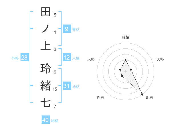 田ノ上 玲緒七さんを姓名の画数から五運を鑑定