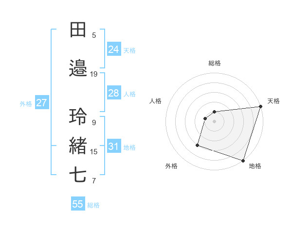 田邉 玲緒七さんを姓名の画数から五運を鑑定