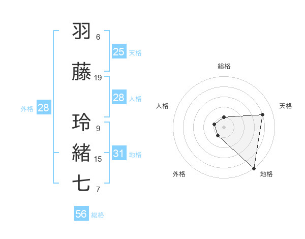 羽藤 玲緒七さんを姓名の画数から五運を鑑定