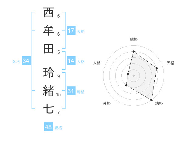 西牟田 玲緒七さんを姓名の画数から五運を鑑定