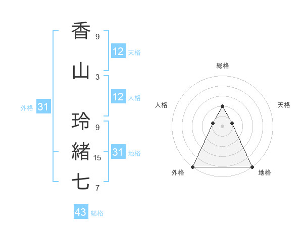 香山 玲緒七さんを姓名の画数から五運を鑑定