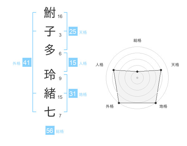 鮒子多 玲緒七さんを姓名の画数から五運を鑑定