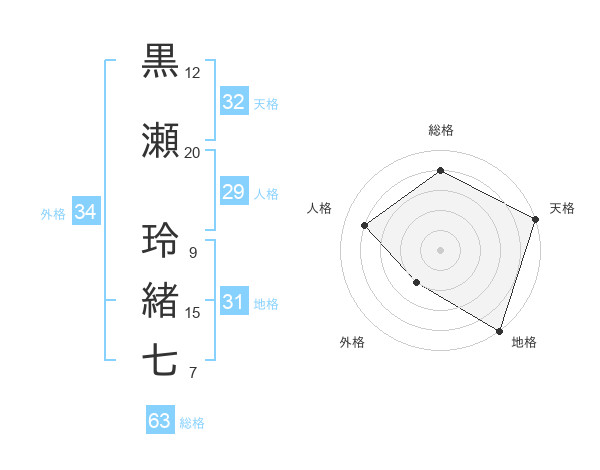 黒瀬 玲緒七さんの総格は63画の4点!