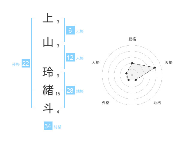 上山 玲緒斗さんを姓名の画数から五運を鑑定