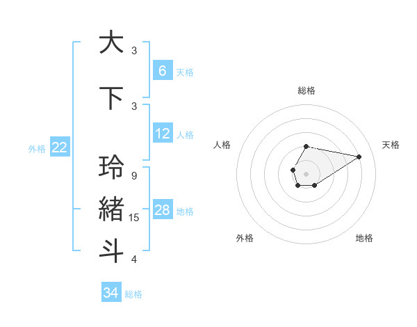 大下 玲緒斗さんの天格は6画の4点!