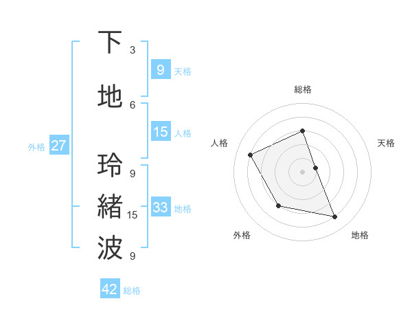 下地 玲緒波さんを姓名の画数から五運を鑑定