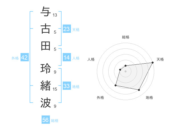 与古田 玲緒波さんを姓名の画数から五運を鑑定