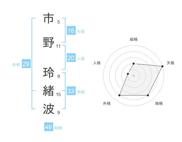 市野 玲緒波さんを姓名の画数から五運を鑑定
