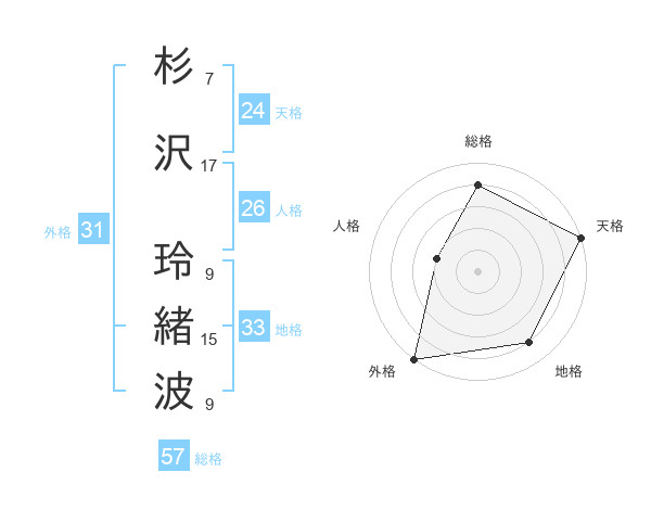 杉沢 玲緒波さんを姓名の画数から五運を鑑定