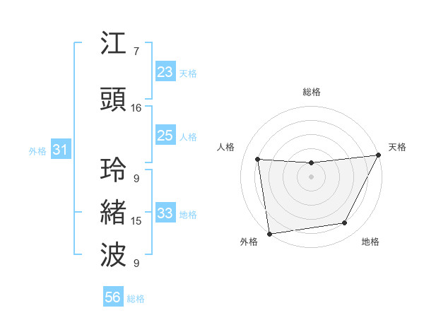 江頭 玲緒波さんを姓名の画数から五運を鑑定