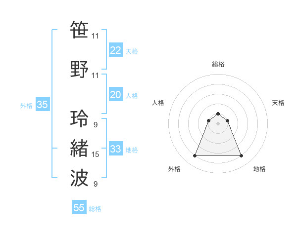 笹野 玲緒波さんの外格は35画の4点!