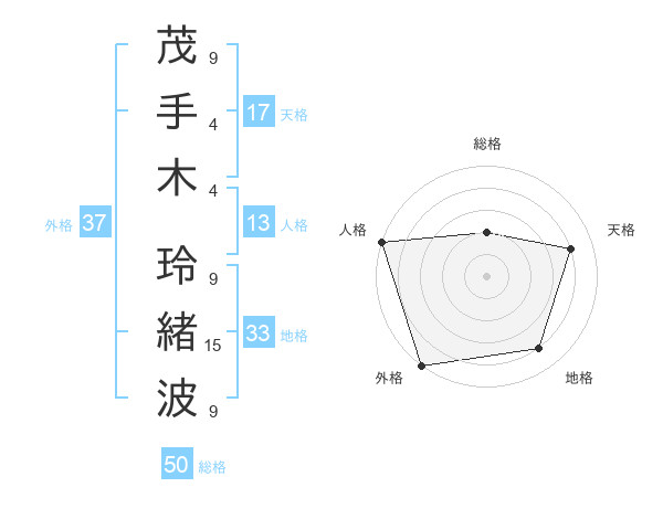 茂手木 玲緒波さんを姓名の画数から五運を鑑定