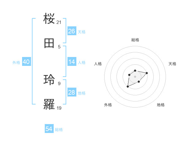 桜田 玲羅さんを姓名の画数から五運を鑑定