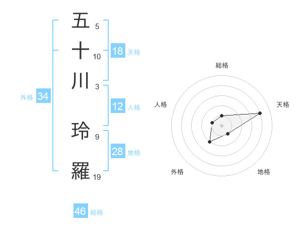 五十川 玲羅さんを姓名の画数から五運を鑑定