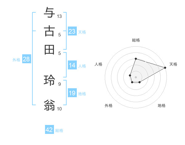 与古田 玲翁さんの天格は23画の5点!