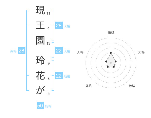 現王園 玲花がさんを姓名の画数から五運を鑑定
