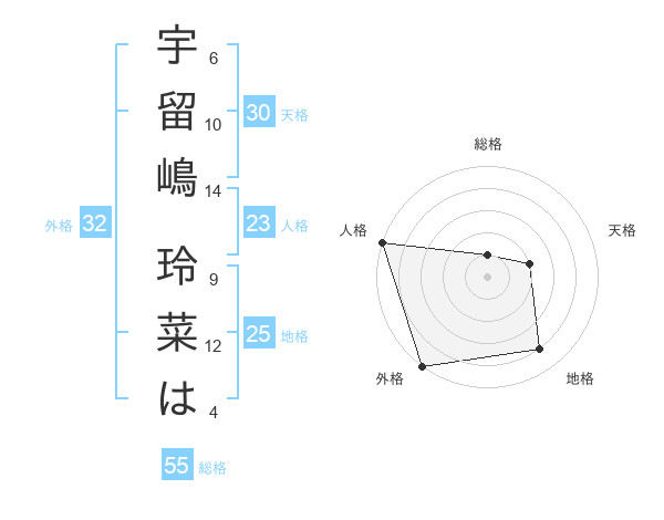 宇留嶋 玲菜はさんを姓名の画数から五運を鑑定