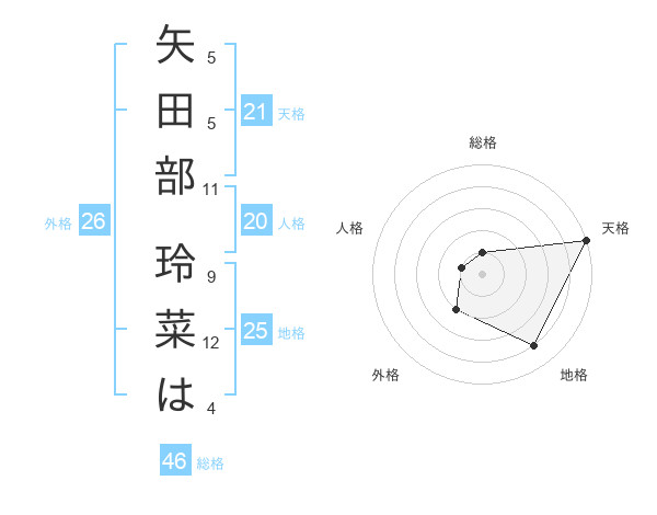 矢田部 玲菜はさんを姓名の画数から五運を鑑定