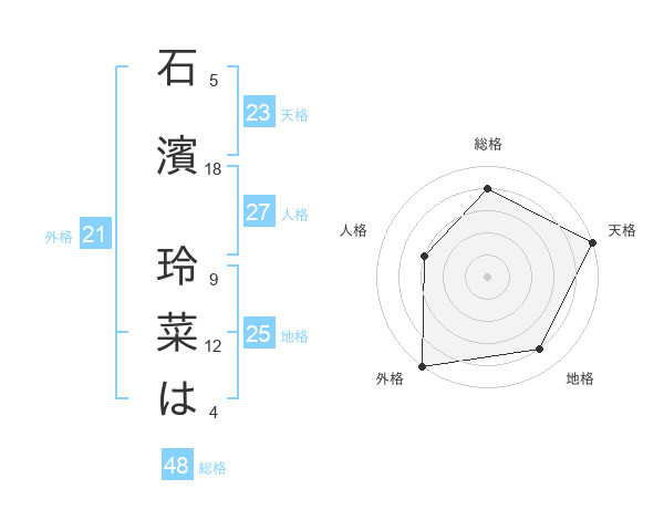 石濱 玲菜はさんを姓名の画数から五運を鑑定