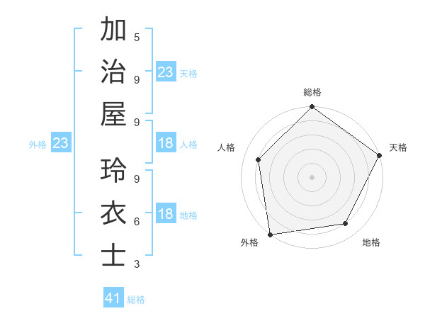 加治屋 玲衣士さんを姓名の画数から五運を鑑定