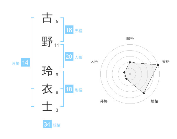 古野 玲衣士さんの天格は16画の5点!