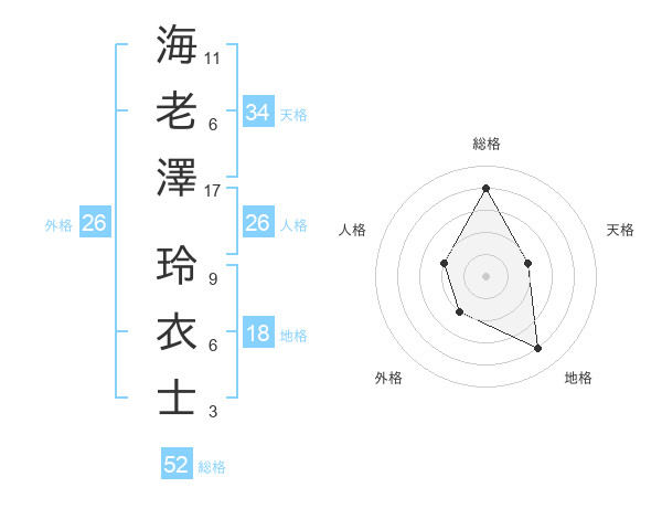 海老澤 玲衣士さんの総格は52画の4点!