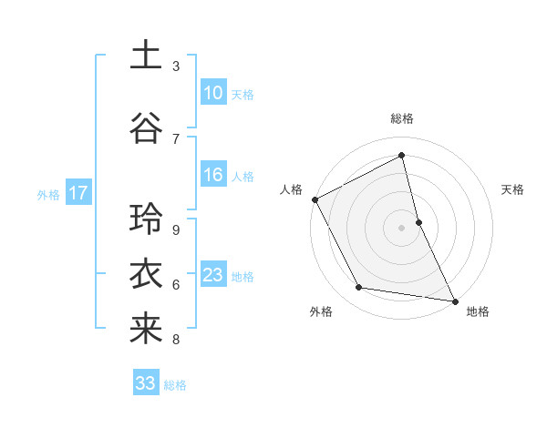 土谷 玲衣来さんを姓名の画数から五運を鑑定