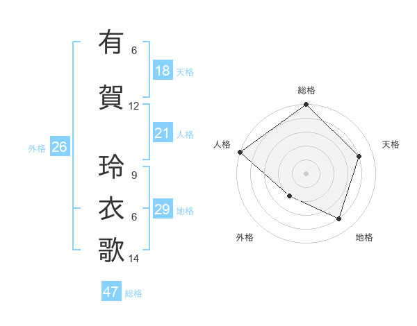有賀 玲衣歌さんの総格は47画の5点!