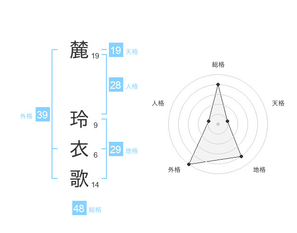 麓 玲衣歌さんの外格は39画の5点!