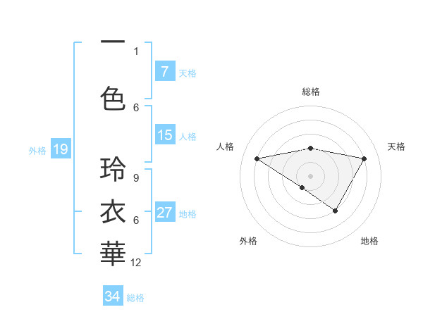 一色 玲衣華さんの地格は27画の3点!