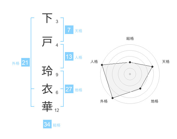 下戸 玲衣華さんの地格は27画の3点!