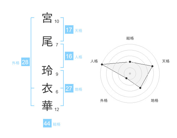 宮尾 玲衣華さんを姓名の画数から五運を鑑定