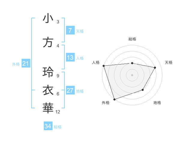 小方 玲衣華さんを姓名の画数から五運を鑑定