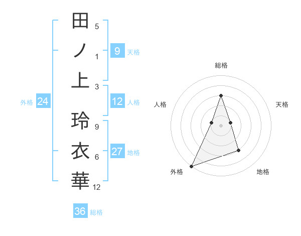 田ノ上 玲衣華さんを姓名の画数から五運を鑑定
