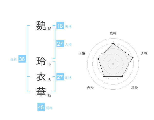 魏 玲衣華さんの総格は45画の4点!