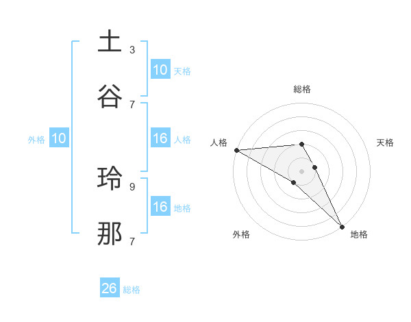 土谷 玲那さんの総格は26画の2点!