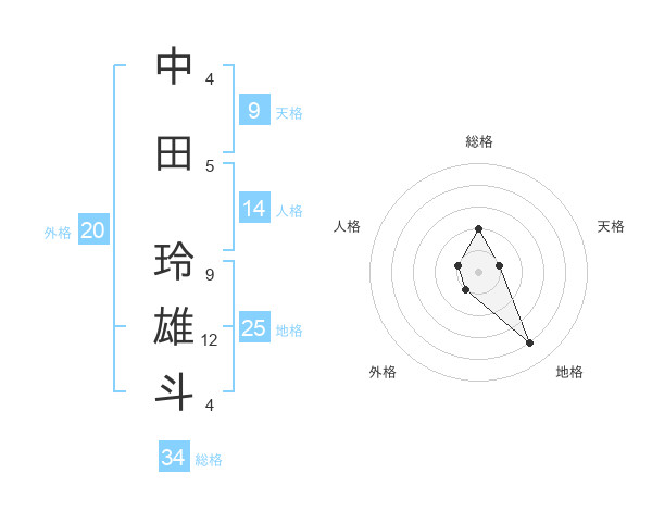 中田 玲雄斗さんを姓名の画数から五運を鑑定