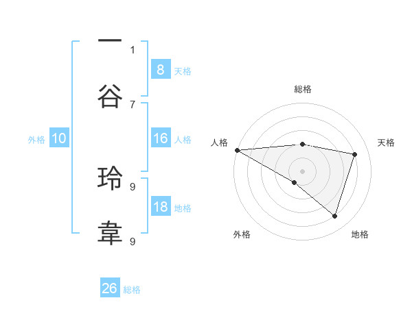 一谷 玲韋さんの総格は26画の2点!