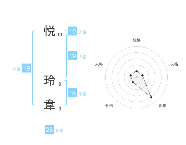 悦 玲韋さんを姓名の画数から五運を鑑定