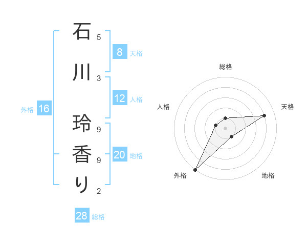 石川 玲香りさんを姓名の画数から五運を鑑定