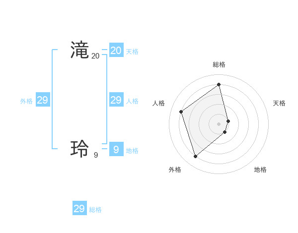 滝 玲さんの総格は29画の4点!