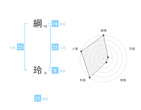 綱 玲さんの外格は23画の5点!
