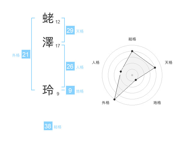 蛯澤 玲さんの天格は29画の4点!
