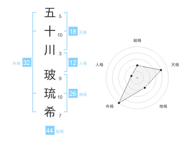五十川 玻琉希さんを姓名の画数から五運を鑑定