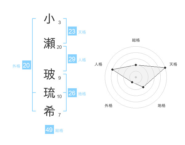 小瀬 玻琉希さんを姓名の画数から五運を鑑定