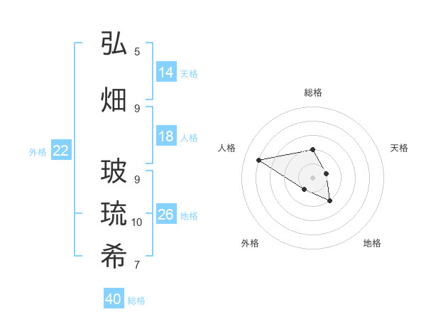 弘畑 玻琉希さんを姓名の画数から五運を鑑定