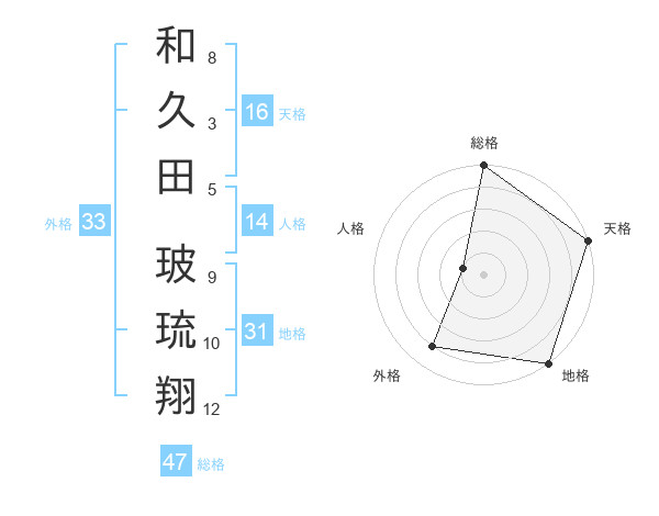 和久田 玻琉翔さんを姓名の画数から五運を鑑定