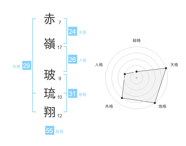 赤嶺 玻琉翔さんを姓名の画数から五運を鑑定